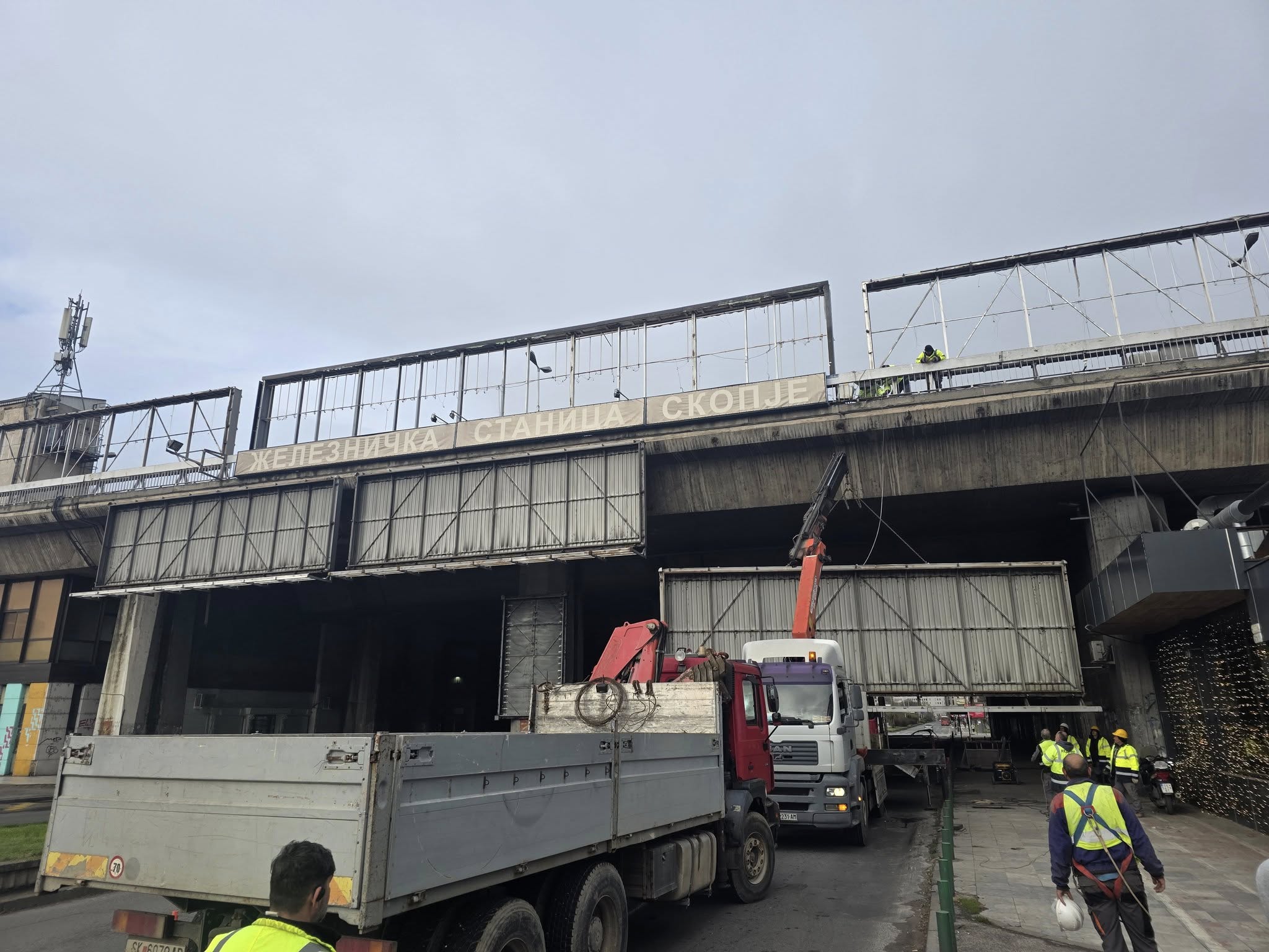 (Видео) Се отстрануваат билборди од Железничката станица Скопје – ќе нема и светлосни реклами