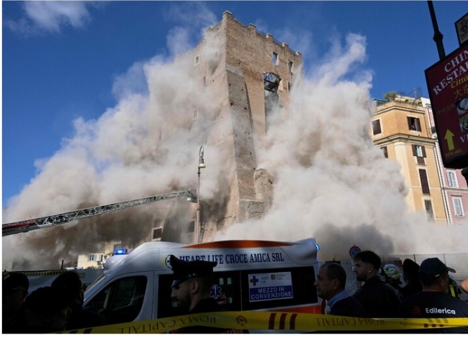 Торе деи Конти во Рим се урна претпладнево за време на реновирачките работи во близина на Империјалниот форум. Пожарникарите брзо реагираа и спасија четири работници, додека еден остана заробен под урнатините.