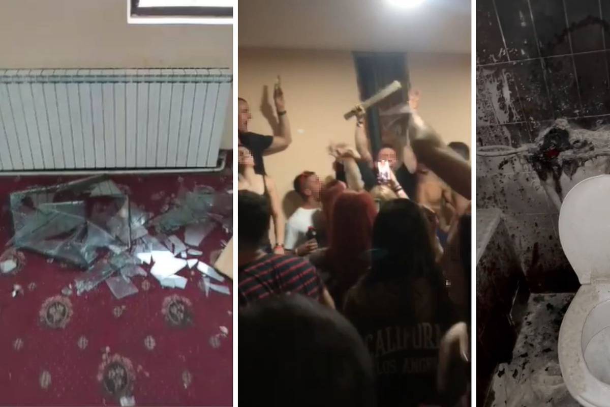 На објавеното видео од хрватскиот медиум може да се види скршен хотелски инвентар, искршени прозорци, пивски шишиња на покривот, тоалет кој изгледа како да е запален…