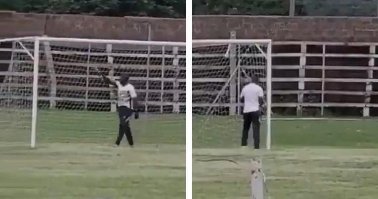 Чарлс Чилеш, тренер на голманот на замбискиот Форест Ренџерс, е суспендиран откако бил снимен како уринира врз статива пред натпреварот.