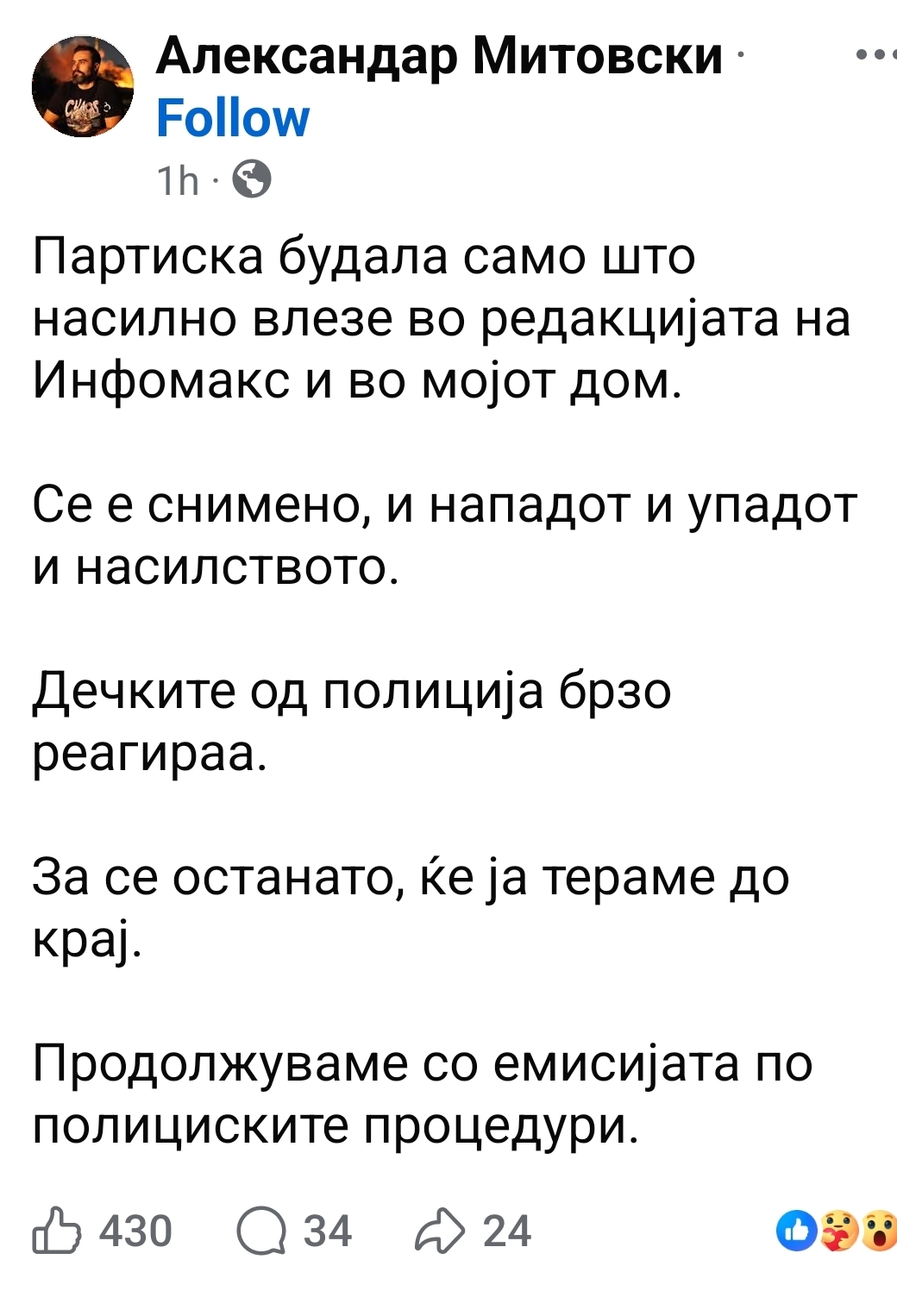 На фејсбук се огласи сопственикот и главен уредник на популарниот поткаст Александар Митовски и еве што наиша