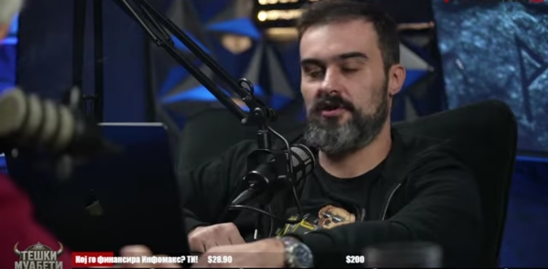 Вечерва околу полноќ додека во живо течеше поткастот Тешки муабети со Александар Митовски Миош Милошевски и Стевче Јакимовски и штотуу најавија дека преминуваат на актуената тема со мигрантите главниот уредник Митовски побара да ја прекинат емисијата оти некој тропа на вратата на студиото.