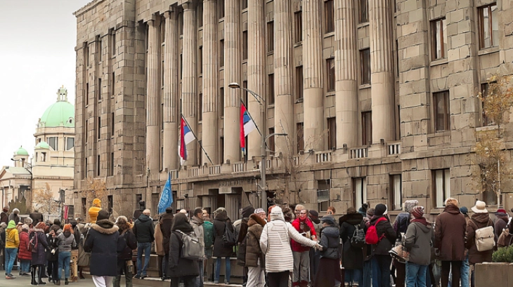 Група судии и обвинители од цела Србија се собраа попладнево пред Уставниот суд во Белград, во знак на протест против политички притисок врз судството.