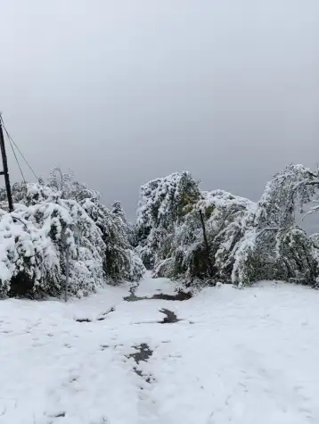 Во Маврово над 30 сантиметри снег, вработени во НП Маврово ги чистат паднатите дрвја на коловозите