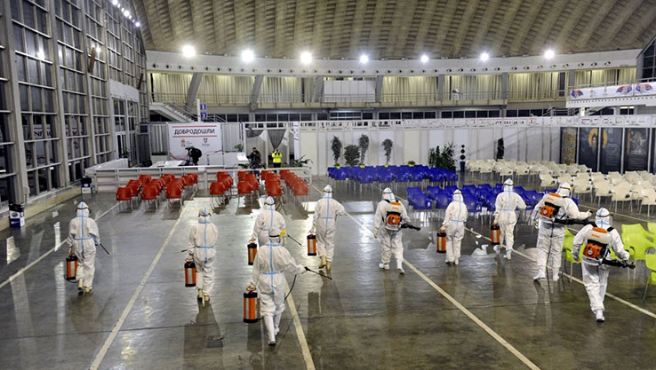 Владата на Србија и Министерството за здравство ја искористија својата позиција на глобалната табела за кампањата „На здравје“! Во едно видео можеме да видиме како боксер става маска и победува противник којшто го персонифицира ковид-19. Во друго видео, покрај новите болници, може да се види и неодамна подигнатиот контроверзен споменик на средновековниот владетел Стефан Немања, во близина на поранешната главна железничка станица во Белград, како и новиот пешачки премин во центарот на градот којшто потсетува на оној во Шибуја, Токио.