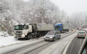 Поради врнежи од снег на патниот правец Гостивар-Кичево преку планинскиот превој Стража од 07.45 часот се воведува забрана за сообраќај за тешки товварни возила. Забрана за камиони има и на планинскиот превој Пресека, крак Маврово – Дебар и Струга – ГП Ќафасан, соопштија ЈП Македонијапат и АМСМ.