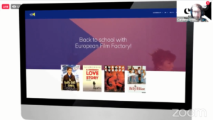 к Во денешното обраќање на ЗУМ, Емили Бушетил, директорката на одделот за кино при Францускиот институт го најави започнувањето на Европската филмска платформа, која има за цел да го промовира филмското образование низ цела Европа.